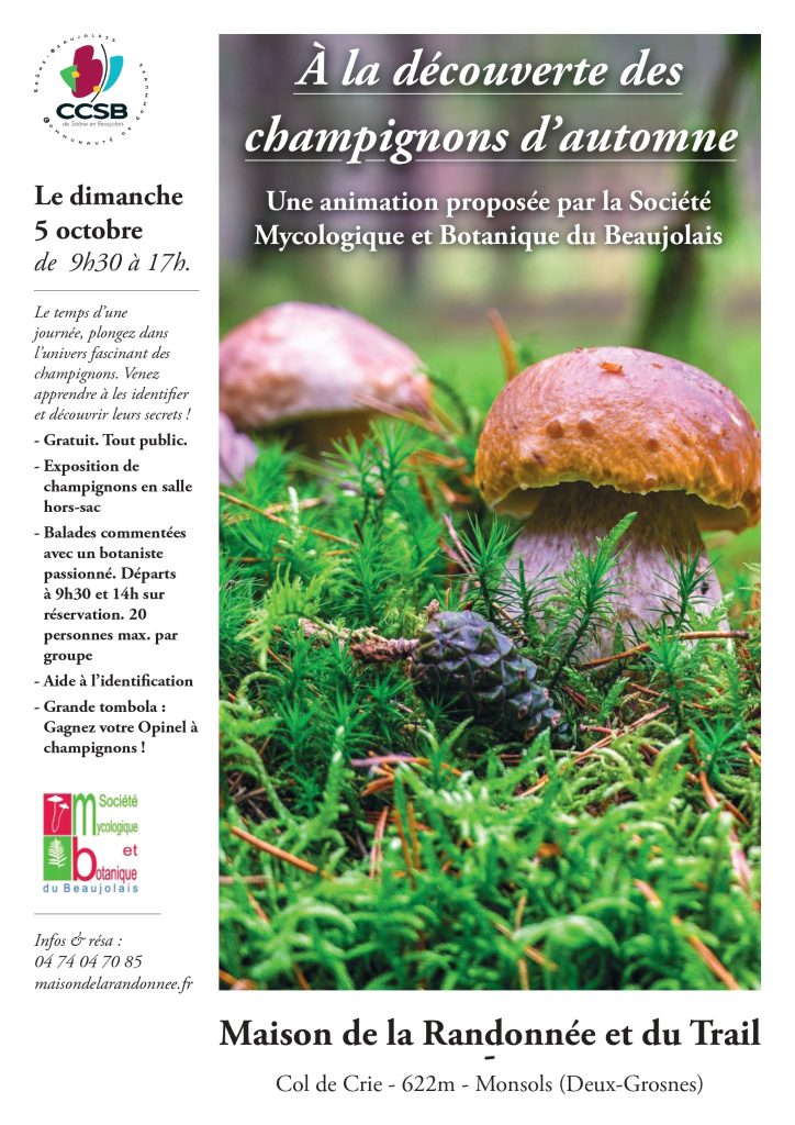 L’automne rime avec champignons. La Maison de la Randonnée du col de Crie, en partenariat avec l’Association Mycologique et Botanique du Beaujolais, propose une journée de découverte de cet univers, le 5 octobre. Sur inscription.