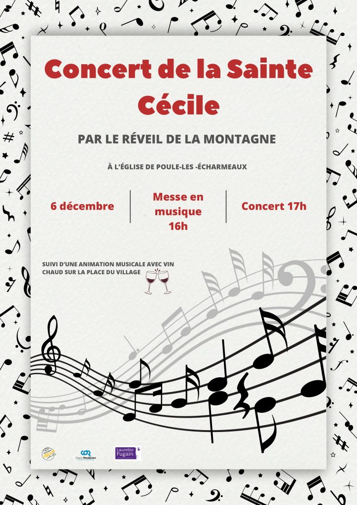 6 décembre : messe en musique et concert de la Sainte Cécile  avec « Le Réveil de la Montagne ». Eglise Saint Martin à 17h.