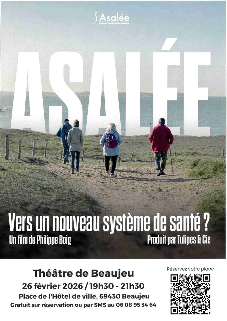 26 février : soirée Ciné-Débat autour du documentaire « ASALEE : Vers un nouveau système de santé ? », au théâtre de Beaujeu, de 19h30 à 22h.