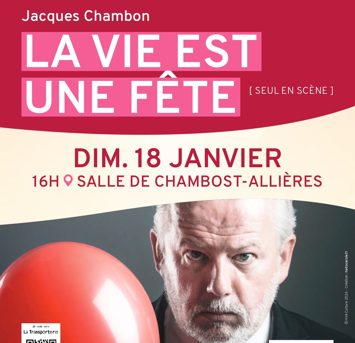 18 janvier à 16h : avec HVA Culture, retrouvez Jacques Chambon pour son seul en scène « La vie est une fête ». C’est noir, c’est grinçant… mais c’est très, très drôle ! Prudent réserver : 06 78 40 32 59.