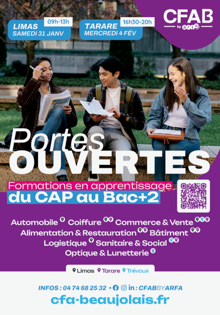 Le CFA du Beaujolais organise deux demi-journées Portes Ouvertes afin de favoriser l’accès à l’information et de promouvoir ses formations auprès des familles: