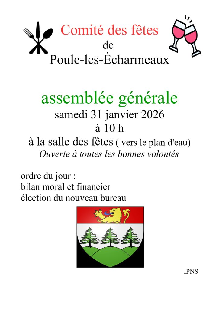 Si vous souhaitez intégrer le Comité des fêtes, une assemblée générale, ouverte au public, est organisée le 31 janvier à la salle des fêtes, à partir de 10h.
