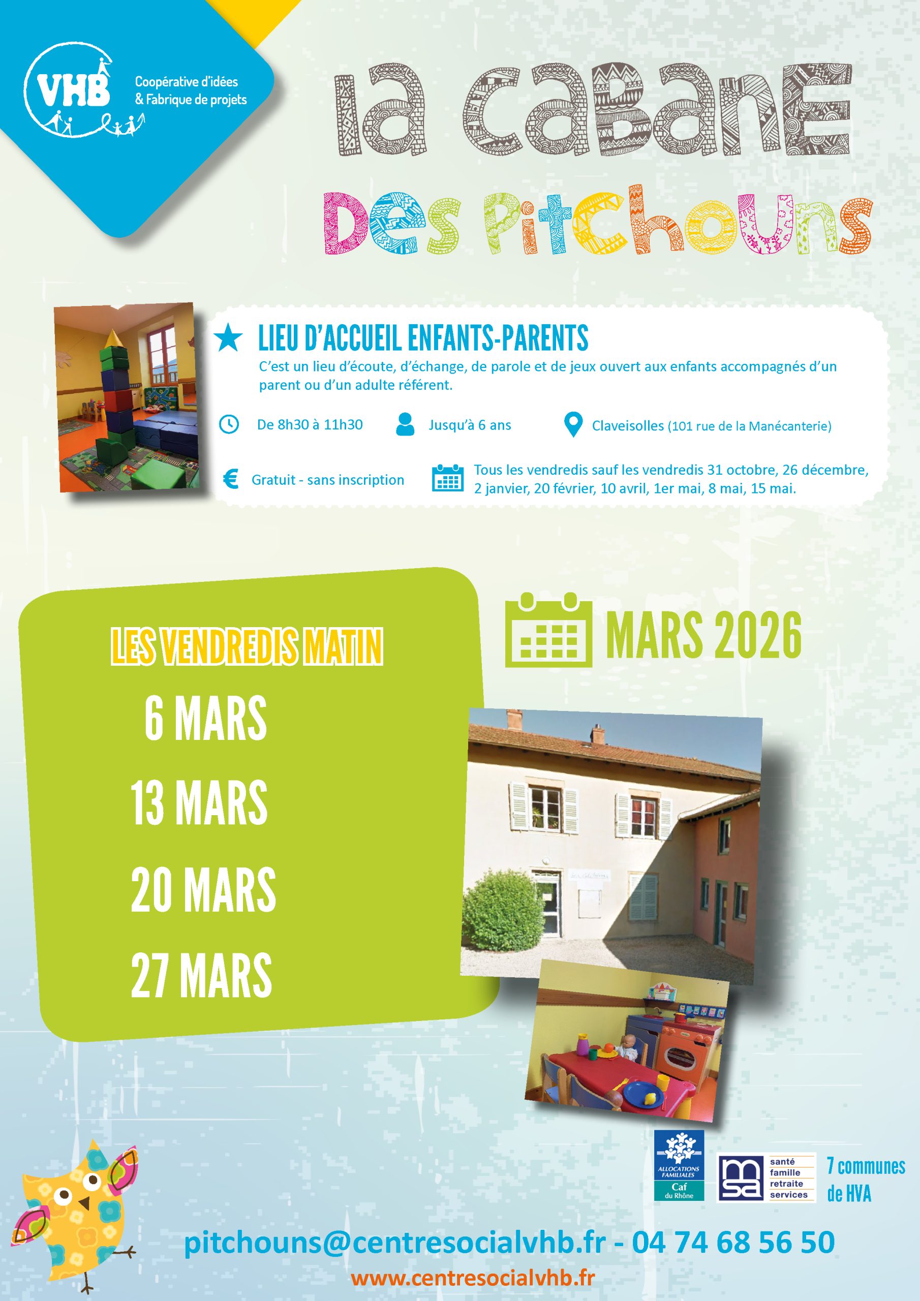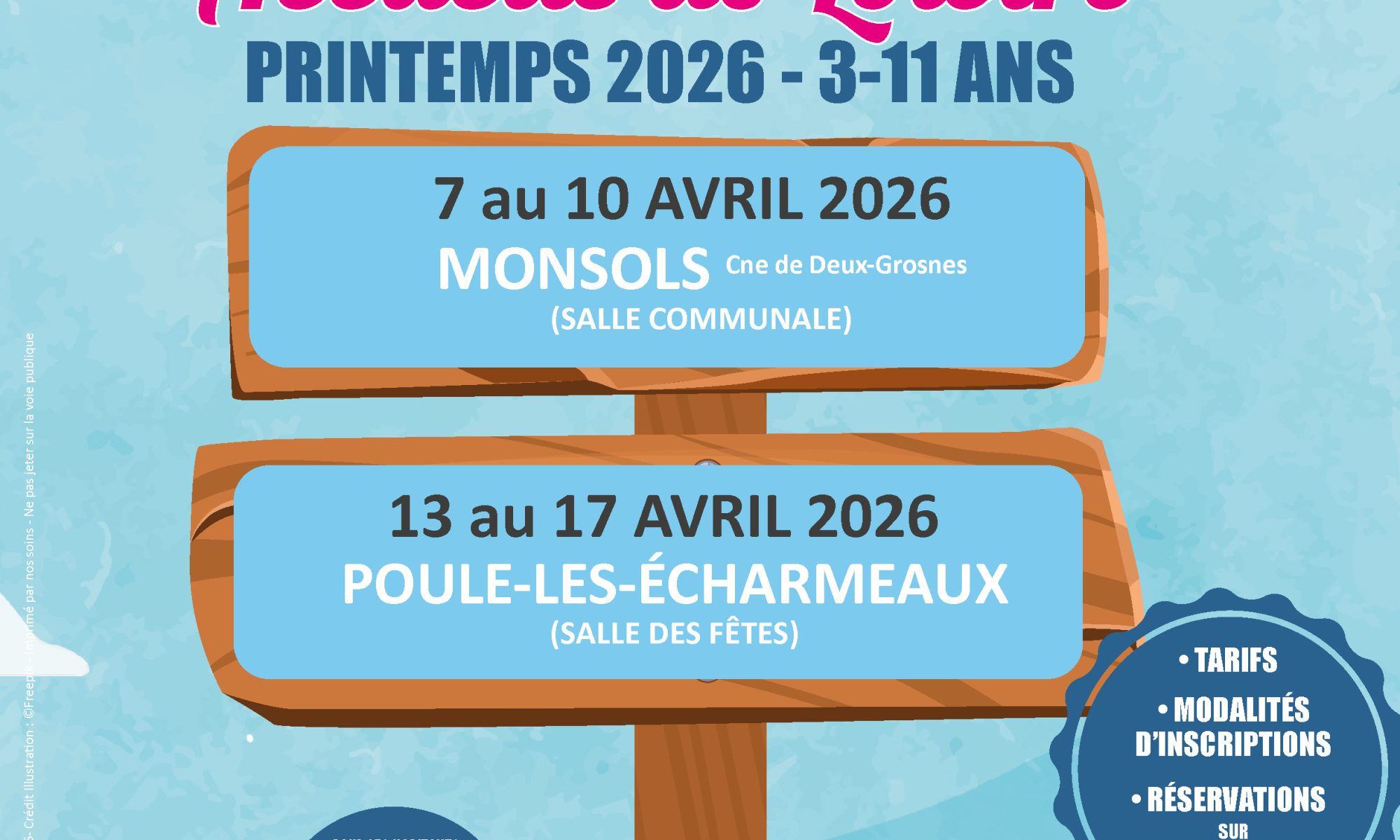 Les vacances de printemps arrivent : VHB propose des loisirs aux 3-11 ans, à Monsols et à Poule-les-Echarmeaux. Attention : pensez à réserver en ligne du 14 mars 9h au 15 mars minuit !