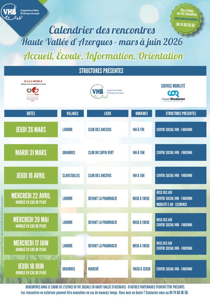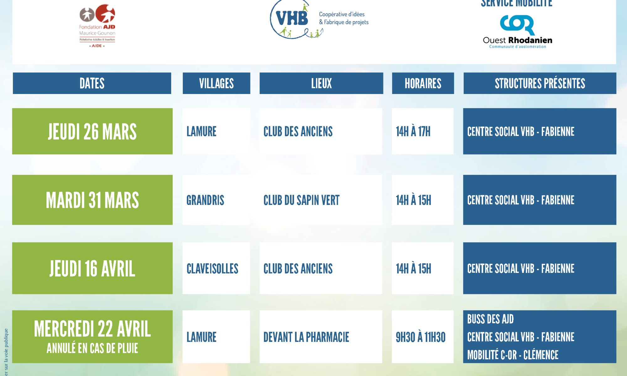 L’équipe mobile du BUSS (Bureau de Santé Sociale) poursuit ses permanences à Poule-les-Écharmeaux. Une infirmière, une psychologue et une coordinatrice sociale vous accueillent deux fois par mois, le mardi entre 13h à 15h30, même sans rendez-vous, derrière la caserne des pompiers.